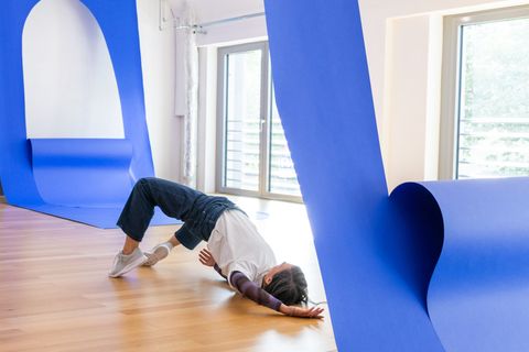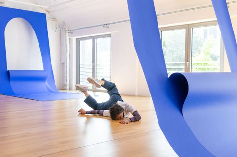 , 2016, HD Video, 1:48Die Arbeit ist Teil einer Reihe von (Video-)Performances, die während einer dreimonatigen Bespielung eines großflächigen Leerstands entstanden sind. Ausgangspunkt waren der Boden als Träger und der eigene Körper als Material, der sich im Spannungsfeld zwischen Gravitationskraft, Rasterlinien und Bewegungsrichtungen des Raumes in diesen einschiebt. Dabei drücken Kräfte im Zusammenspiel, Fragmente setzen sich in Bewegung und richten sich als Haltung empor.
